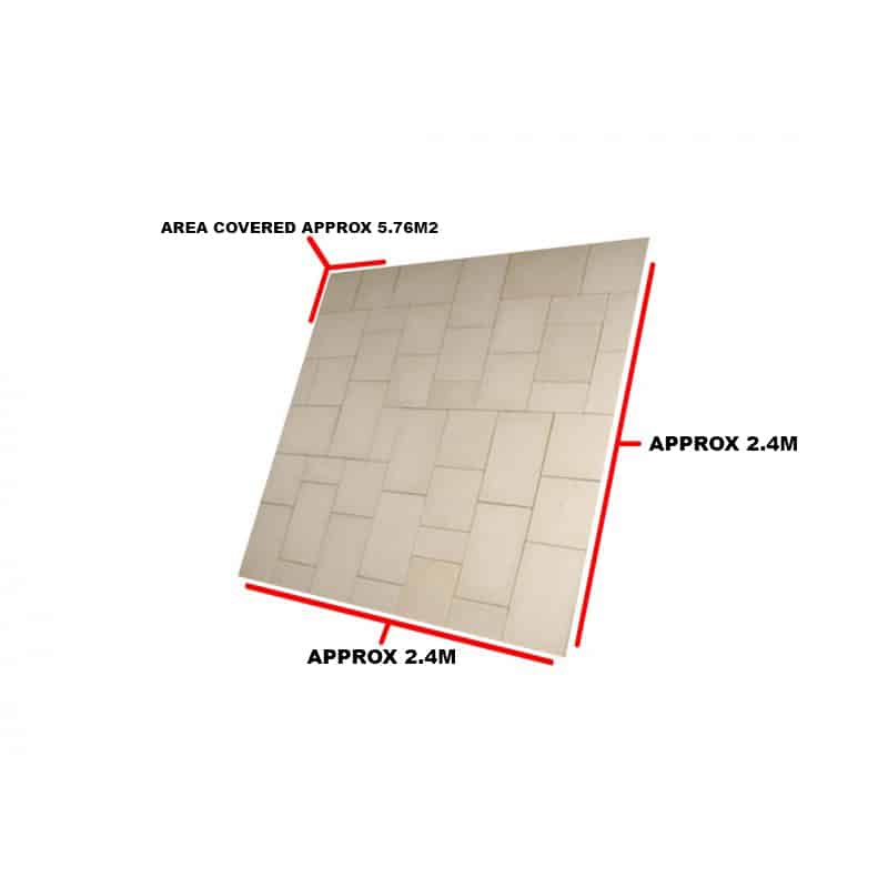 Covering an area of 5.76 square meters, the Baroque Paving kit is ideal for patios, courtyards, or garden paths. Its classic design and quality materials ensure longevity and aesthetic appeal, making it suitable for various landscaping projects.