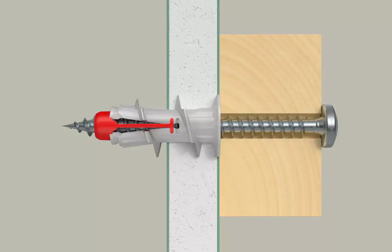 • The self-drilling fischer DuoBlade allows fast and easy installation in gypsum plasterboard and gypsum fibreboard.
