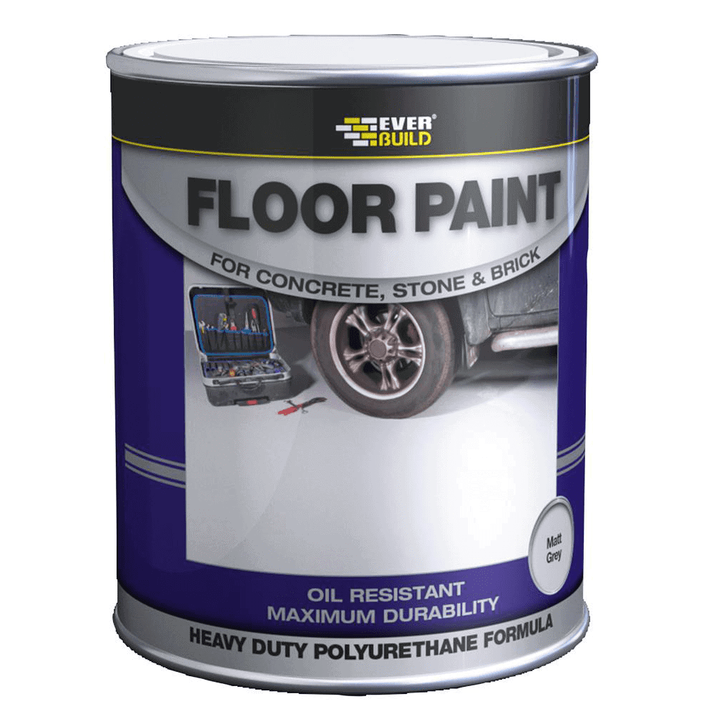 Everbuild Floor Paint is a solvent-based polyurethane floor paint designed to provide a clean hard wearing finish to concrete, stone and wooden floors subject to light to medium traffic. Ideal for use on garage floors, workshops, storerooms, walkways etc. It gives enhanced durability, abrasion resistance and a good resistance to dilute acids/alkalis and oils.