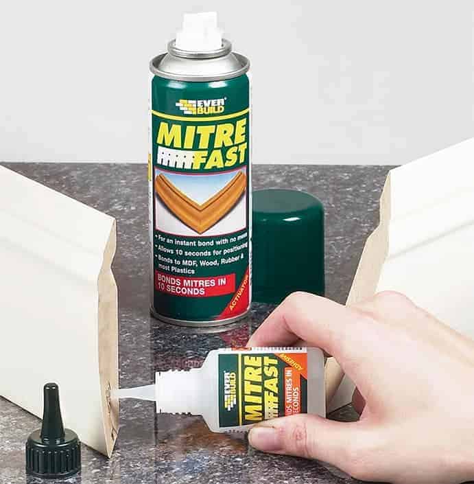 Mitre Fast Bonding Kit is a two-part instant adhesive system comprising a cyanoacrylate adhesive and aerosol activator. Mitre Fast is mainly used in the furniture, timber, kitchen and plastics industries where its instant bonding properties dramatically reduce assembly times for mitre joints when compared to conventional wood adhesives.