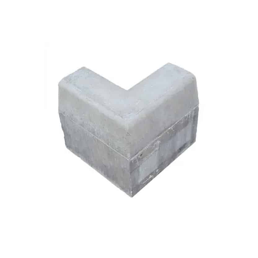 The Half Batter External Angle kerb is a purpose-made concrete unit designed to form a clean, sharp outside corner where two kerb lines meet at an outward-facing angle. It features a half batter profile, meaning the front face of the kerb is slightly sloped, providing both visual uniformity and functional edge guidance for vehicles and pedestrians. This shape helps reinforce traffic flow while maintaining a defined perimeter for roads, pathways, driveways, and parking areas.