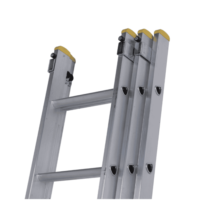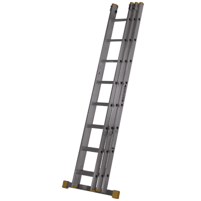 This Werner 723 Series 2.41m Triple Box Section Extension Ladder has an extended height of 5.18m. With box section stiles designed to ensure the ladder is lightweight but strong, this ladder is a ideal for jobs around the work site. Features include manual thumb operated locking catches to prevent sections separating, slip resistant D-shaped rungs and a wide stabiliser for added safety during use. Approved to the latest EN131 standard. For Professional Use.